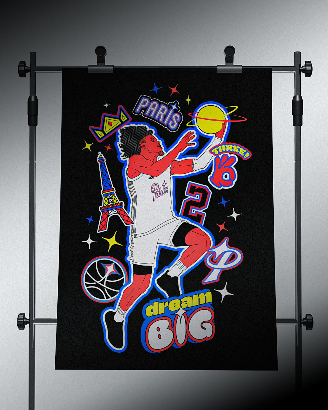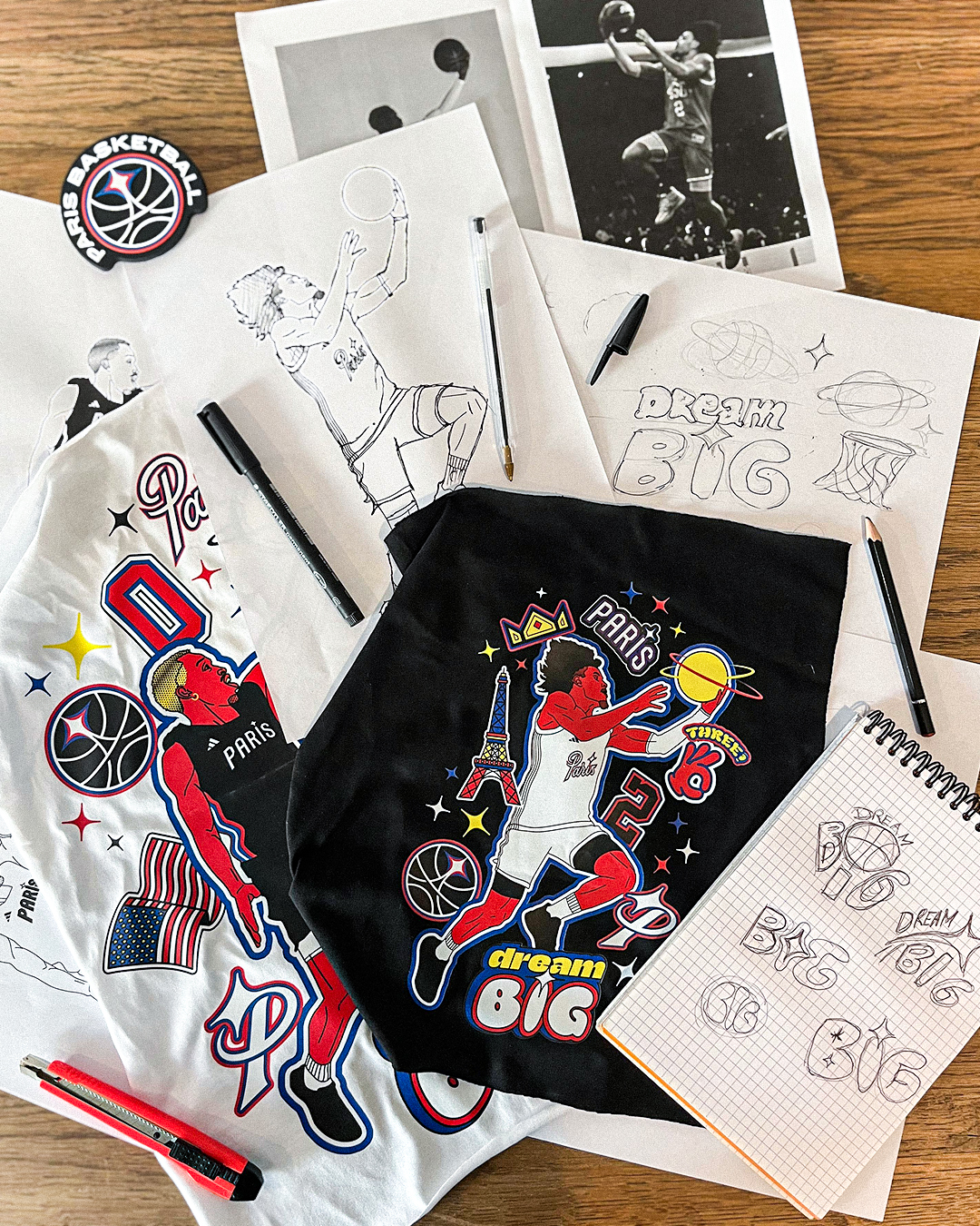 Ce claim nous a guidés tout au long de la création de ce projet de merchandising pour Paris Basketball. Combien de jeunes basketteurs ont déjà douté de leur rêve de devenir pro, persuadés que leur taille les empêcherait d’y parvenir ?