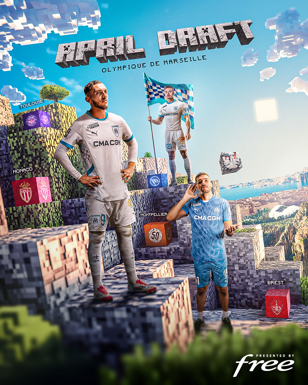 À l’occasion de la saison 2024/25, l’Olympique de Marseille nous a confié la création des visuels "Monthly". Un travail mené tout au long de la saison, au rythme des compétitions, avec l’enjeu de proposer des visuels forts et immédiatement identifiables, capables d’accompagner chaque rendez-vous sportif. Les visuels mensuels sont des contenus de marque conçus pour annoncer les rencontres clés de manière plus créative et informelle.