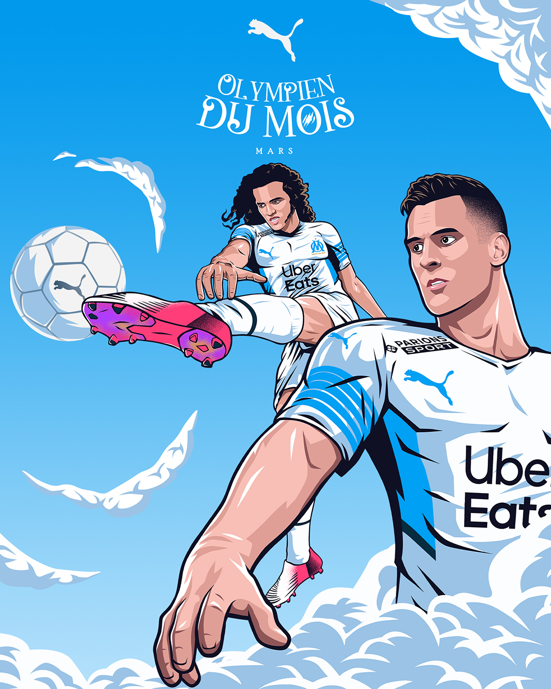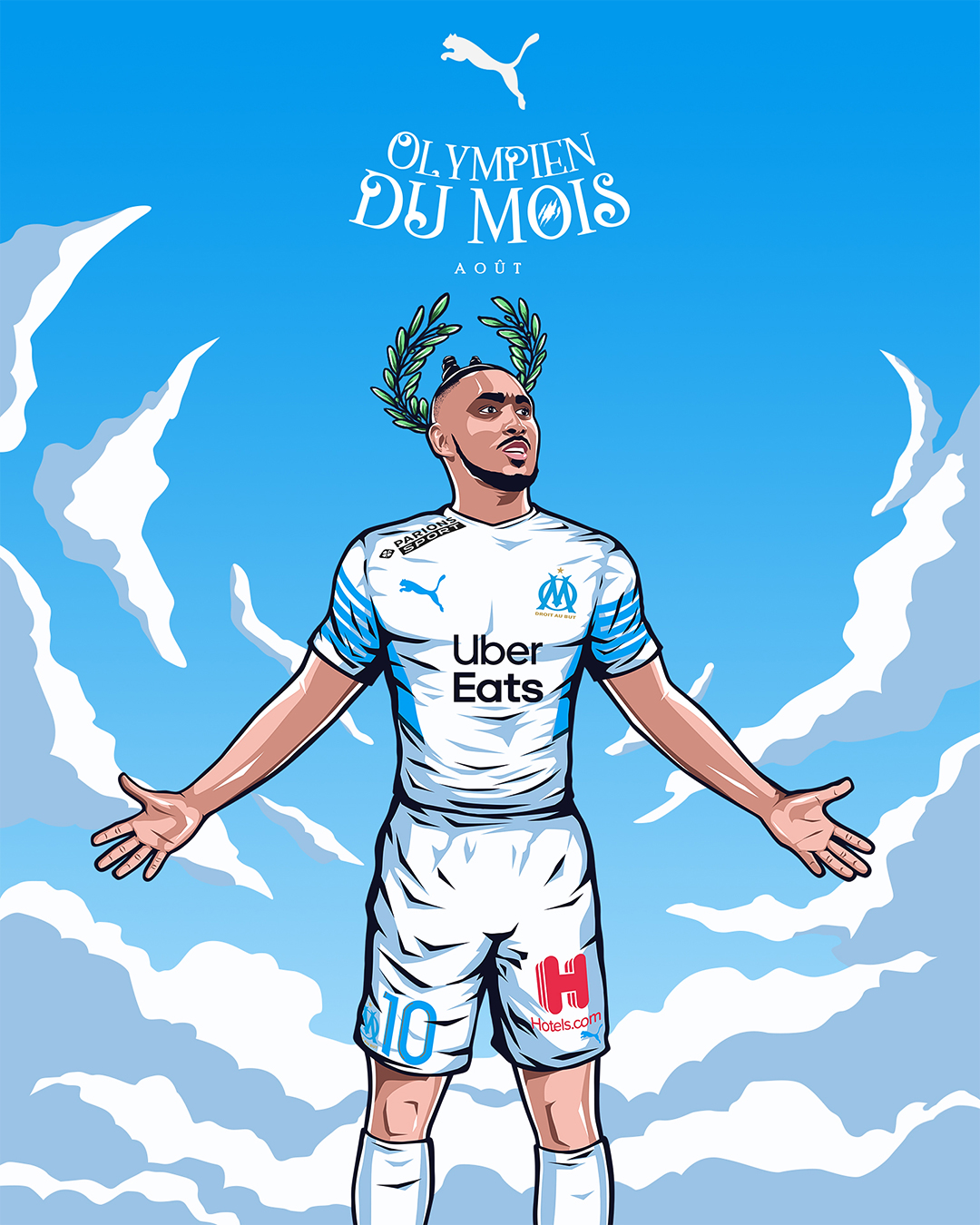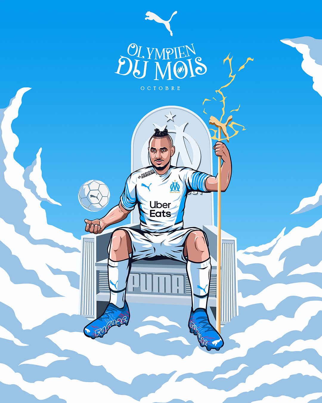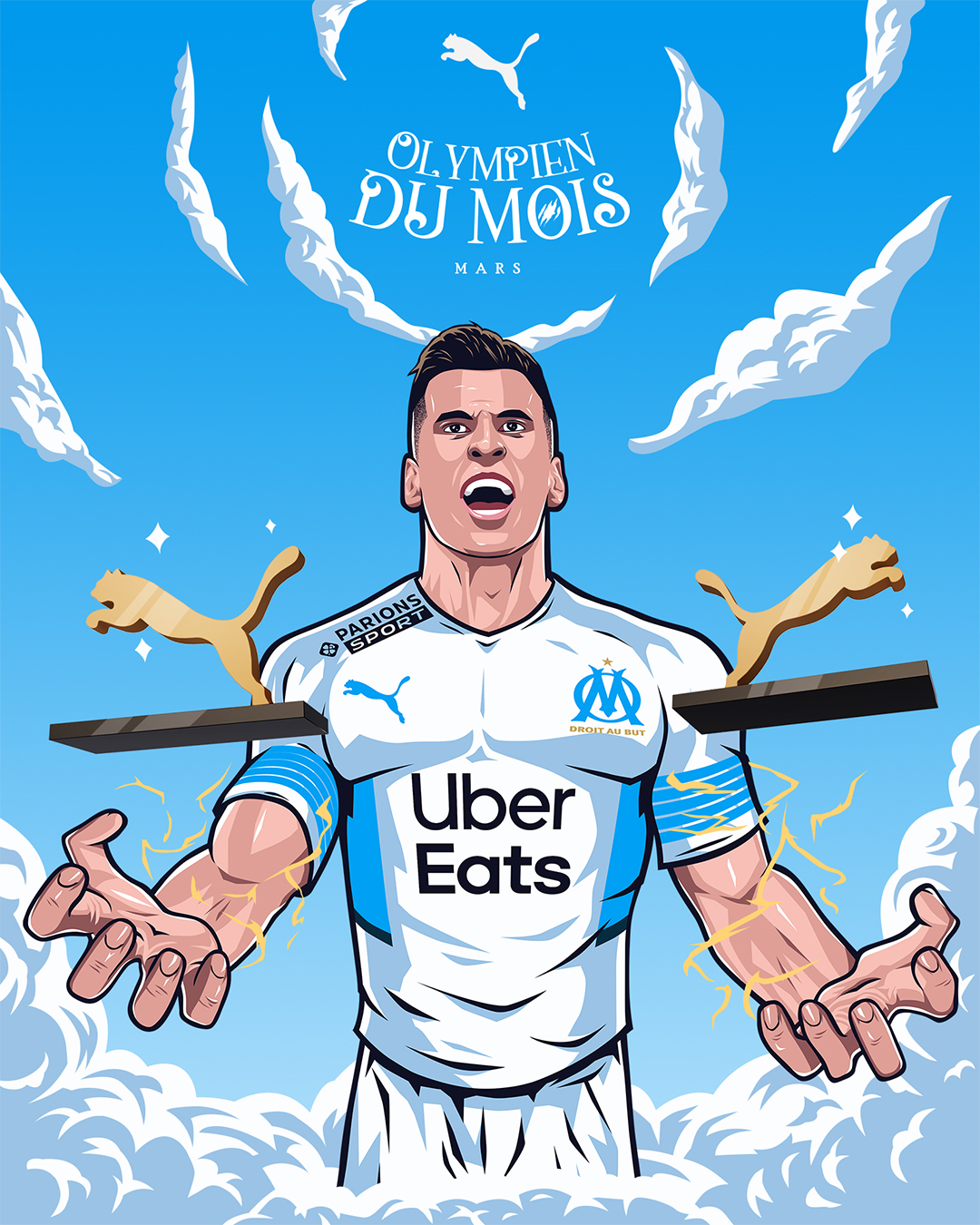 « L’Olympien du mois » est une activation portée par Puma, qui met chaque mois un joueur à l’honneur en célébrant ses performances exceptionnelles et son impact sur l’équipe. Le projet vise à renforcer le lien avec les supporters en mettant en avant les héros du quotidien du club. Pour la saison 2021/2022, nous avons réalisé les illustrations accompagnant le format « Olympien du mois ».