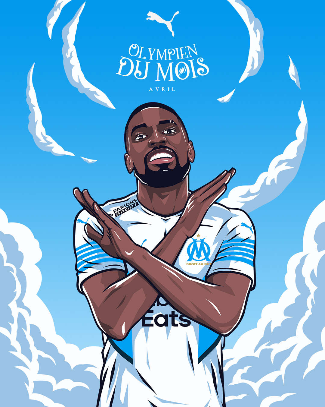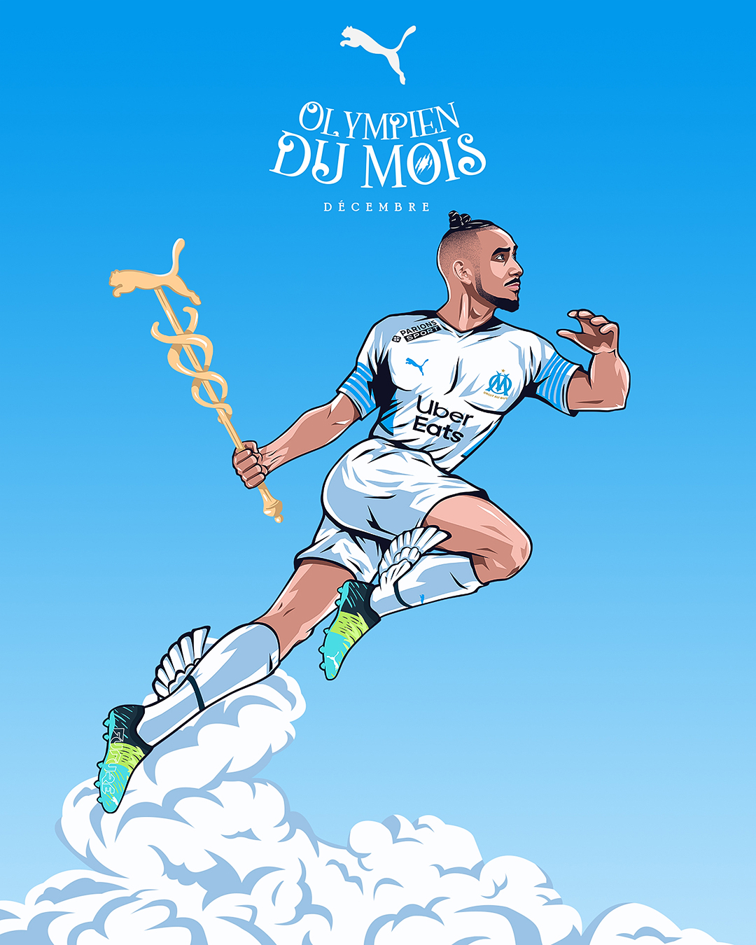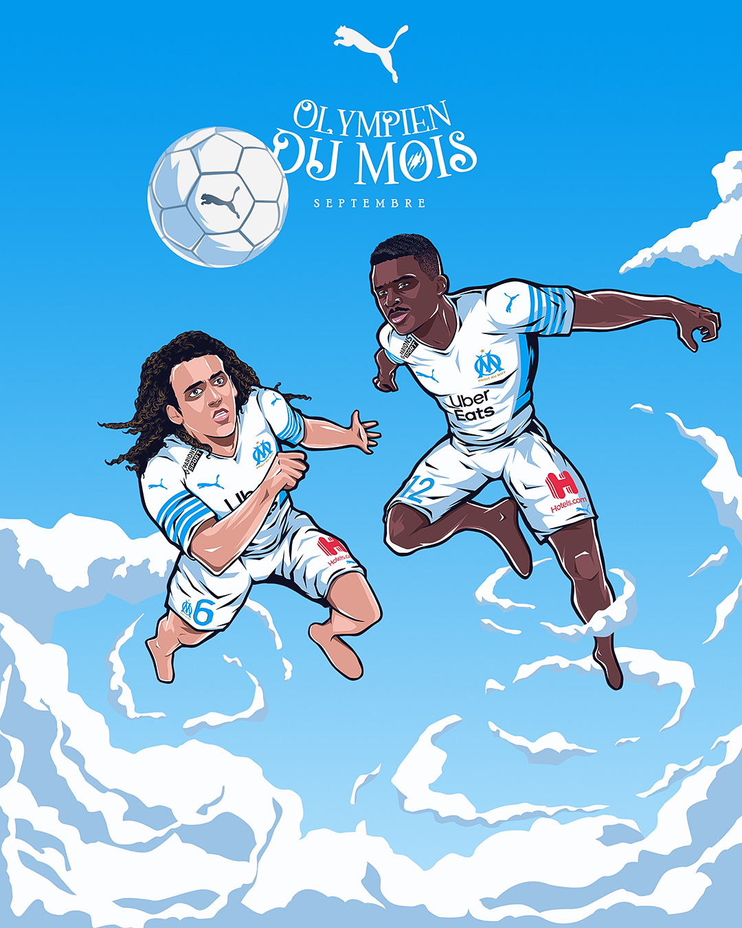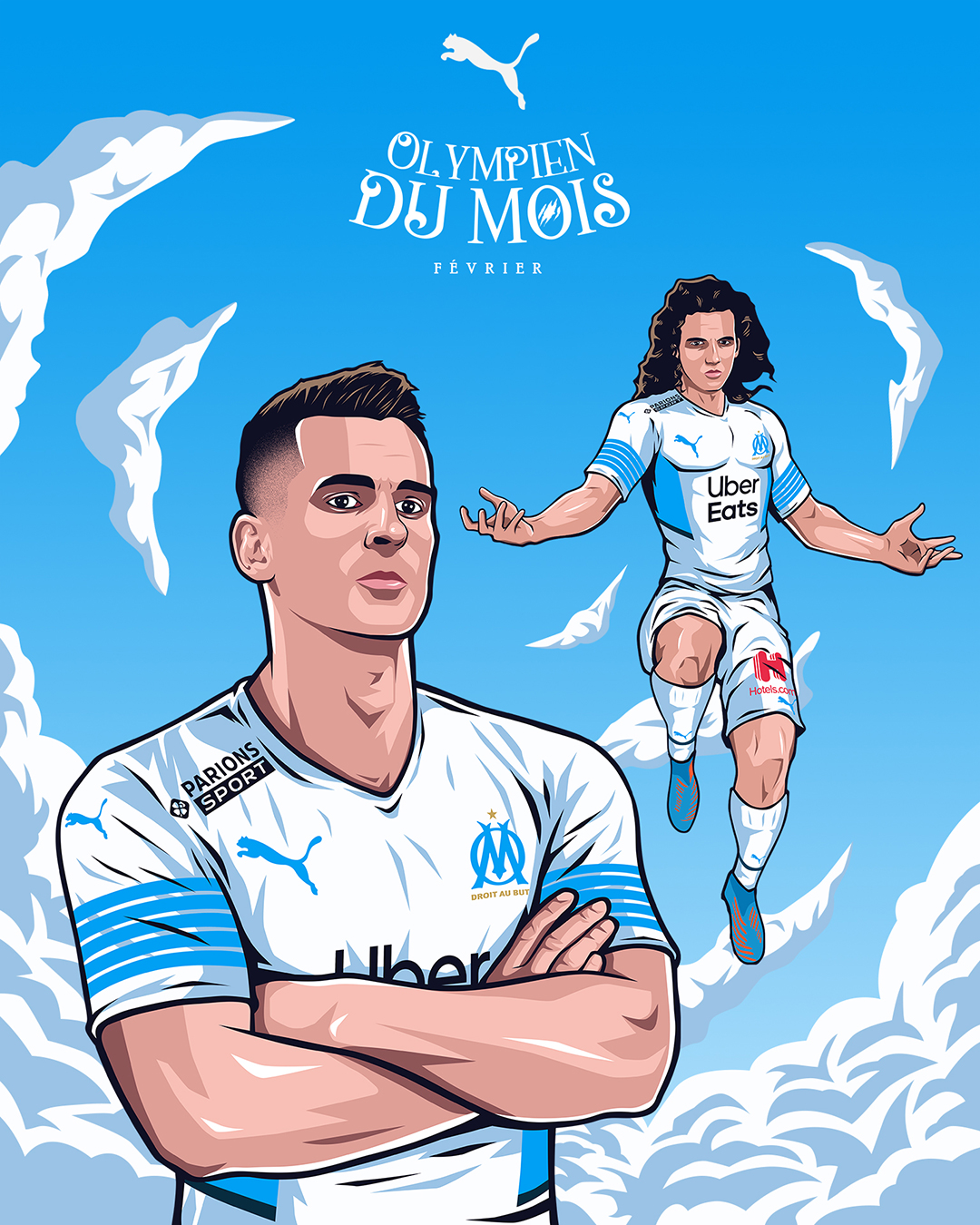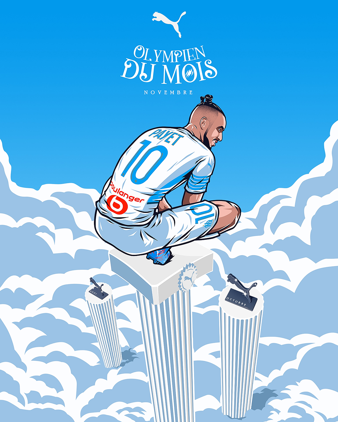 « L’Olympien du mois » est une activation portée par Puma, qui met chaque mois un joueur à l’honneur en célébrant ses performances exceptionnelles et son impact sur l’équipe. Le projet vise à renforcer le lien avec les supporters en mettant en avant les héros du quotidien du club. Pour la saison 2021/2022, nous avons réalisé les illustrations accompagnant le format « Olympien du mois ».